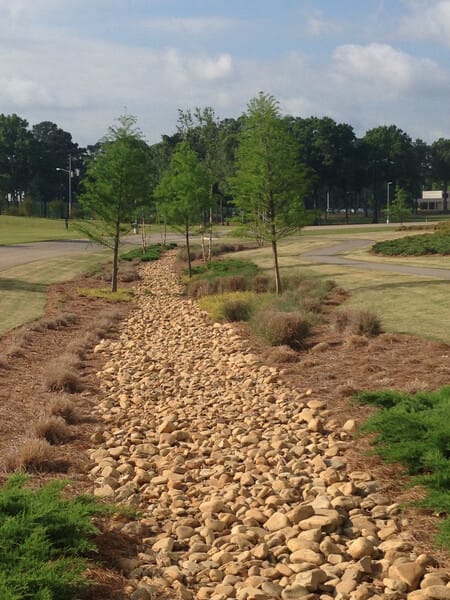 Water conservation strategies, like slowing down the flow of water is the name of the game for a lot of projects involving sustainable site design.