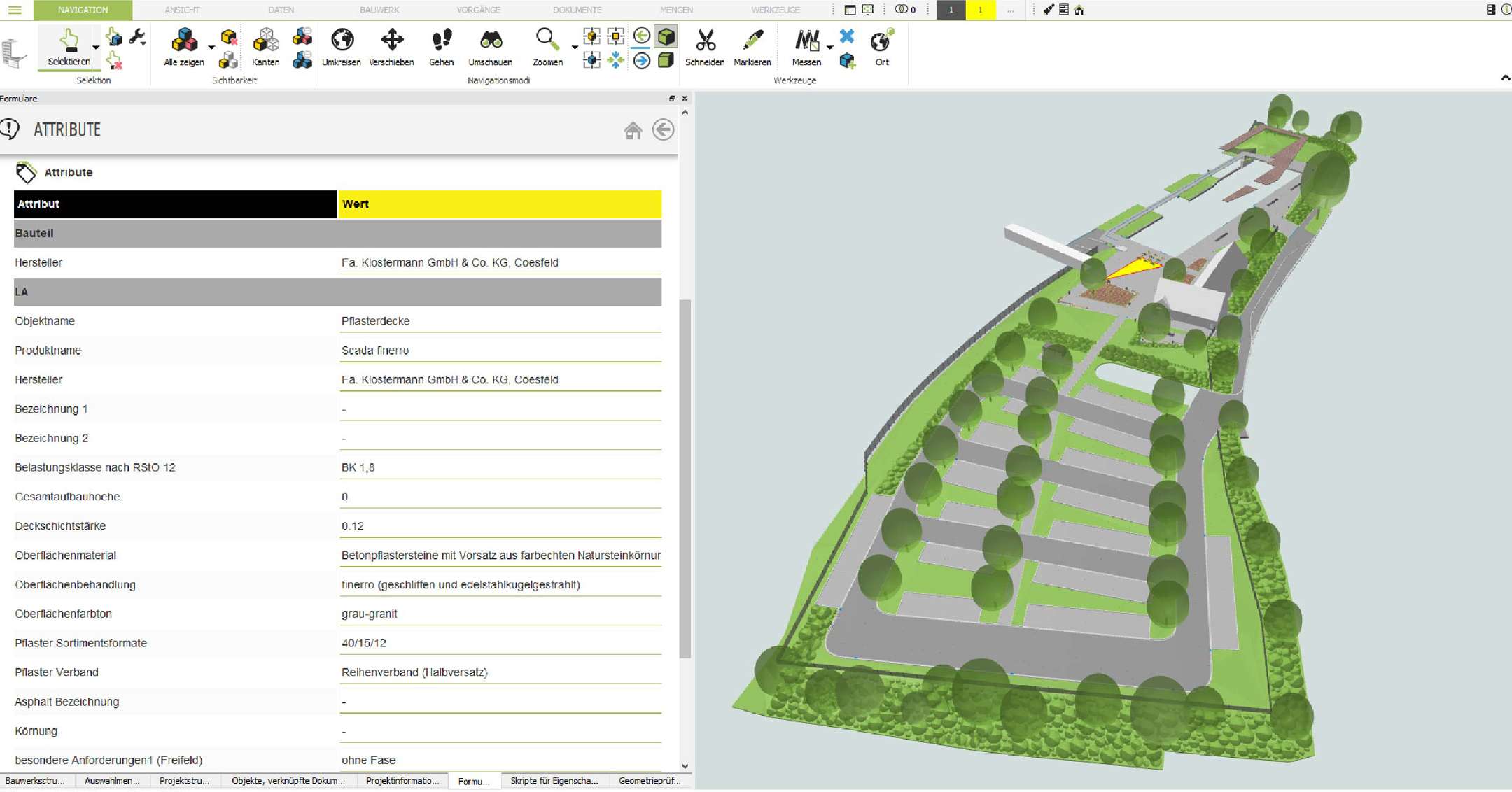 Since with these self-created objects the 2D representation, in line with the wall and ceiling objects of the building, was missing, scape Landschaftsarchitekten referenced the 3D landscape model in a 2D drawing of the site plan and adapted the surfaces to the 3D model.