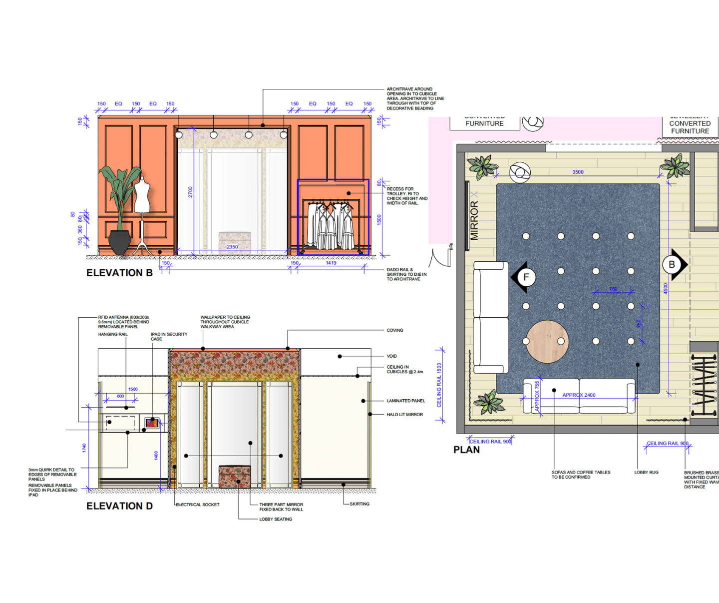 Technology-focused storefronts for the River Island brand will be designed by an in-house design team using Vectorworks Architect. The team, and designer Hannah Boulter, have long leaned on Vectorworks Architect to aid in their design work for River Island, mainly using 2D drawings to plan out new stores and renovations to existing stores, in addition to adding the Chole system and changing room touch screens.