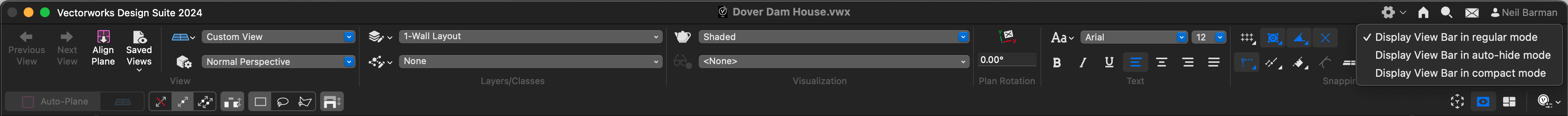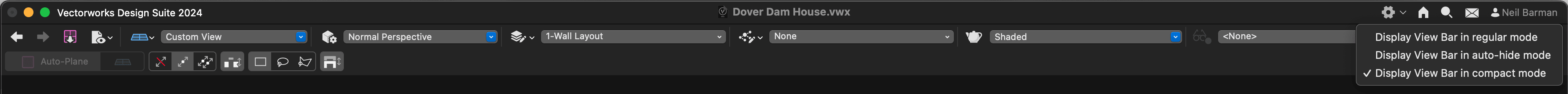 The View Bar in Vectorworks offers three modes: Regular, Compact, and Auto-hide. By adjusting these modes, you can determine the number of controls visible and the amount of screen space they occupy. This customization allows you to tailor your workspace to your specific design needs, enhancing efficiency and productivity.